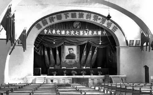 1945年4月23日至6月11日,中国共产党第七次全国代表大会在延安召开。出席七大的代表共755名,其中正式代表547名,候补代表208名,代表全党121万党员,分为中直(包括军直系统)、西北、晋绥、晋察冀、晋冀鲁豫、山东、华中和大后方8个代表团。在七大代表中,年龄最大的近70岁,最小的才20岁左右。