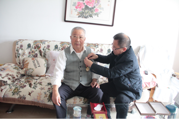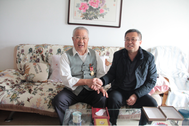 10月26日下午,校工会主席丁连举、办公室和党委宣传部人员一行登门看望慰问了两位老同志,转交了“中国人民志愿军抗美援朝出国作战70周年”纪念章,同时详细了解老同志近期的生活情况和身体健康状况,感谢他们对学校发展做出的贡献,并表达了学校的亲切问候与崇高敬意。