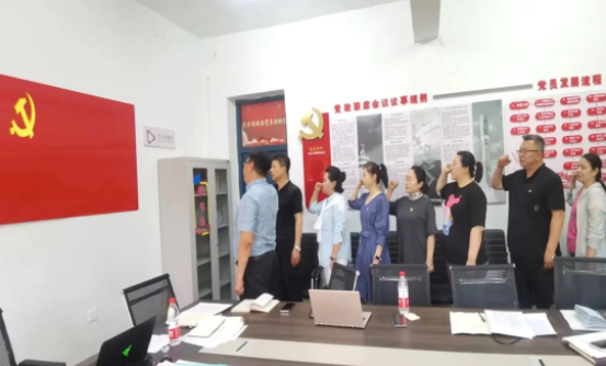 在“七 · 一”党的生日来临之际,全体党员在金校长领誓下,重温入党誓词,以实际行动践行初心使命。