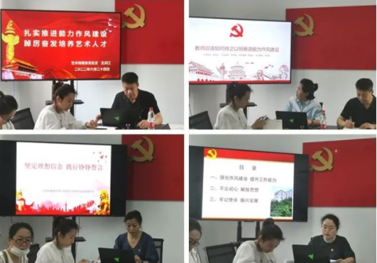6月24日,校党委委员、副校长金瓯深入艺术传媒系作题为《转作风、提效能,以良好精神状态为党的教育事业担当作为》的专题党课,党课采取线上线下相结合方式进行。