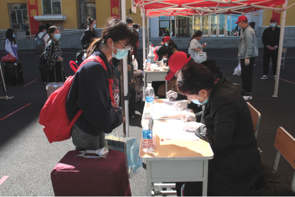 校党委书记庄树谦及班子成员深入接待现场看望返校学生,系部负责人、辅导员、专任教师、安保人员、医护人员以及志愿者们忙碌的身影,随处可见。他们或坚守岗位,或帮忙搬运行李,或疏通道路,或引导返校学生进行入校登记与验证……正是他们的守护,将科学防控、精准施策落实落细。