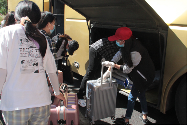 6:30,接待学生返校的100余名教师和60余位志愿者全部到位,在各自所负责的工作区域,做好了相关准备工作。7:30,返校学生乘坐接站大巴车及私家车陆续抵达学校。百余面彩旗和条幅遍布校园,那些熟悉的面孔和焕然一新的校园环境,让学生们倍感亲切。