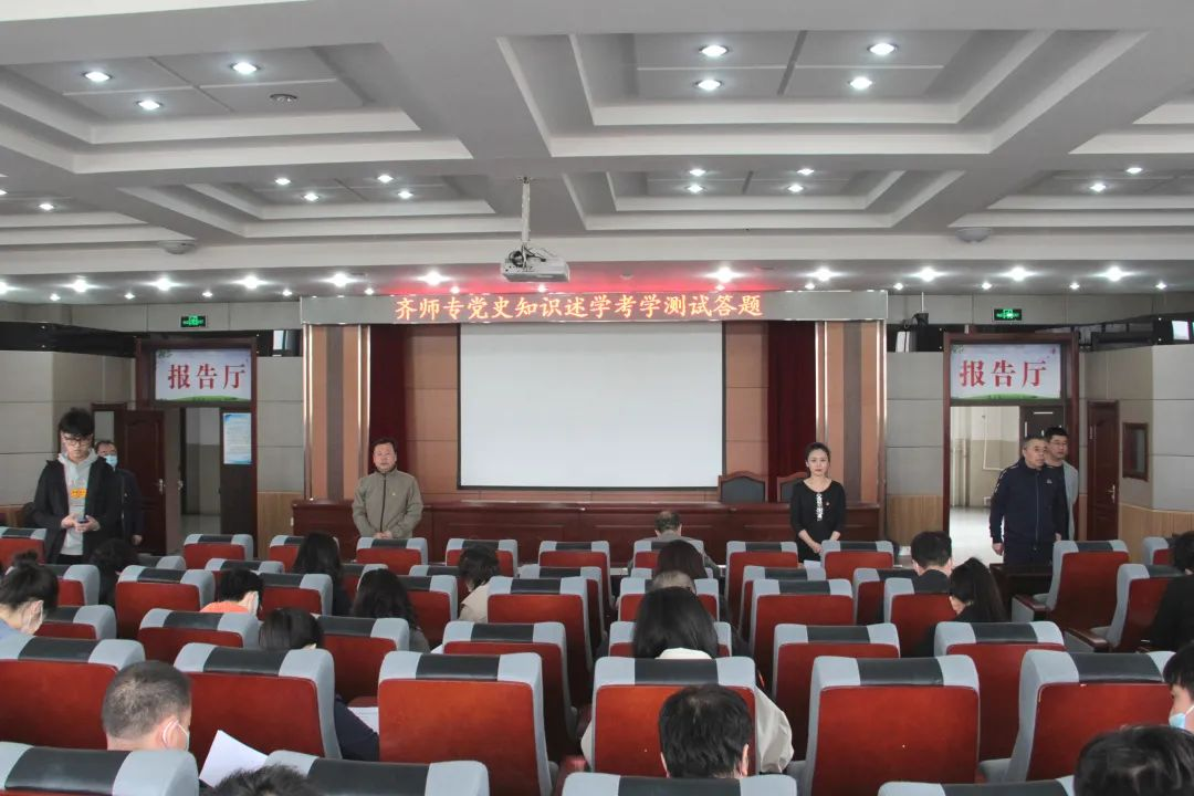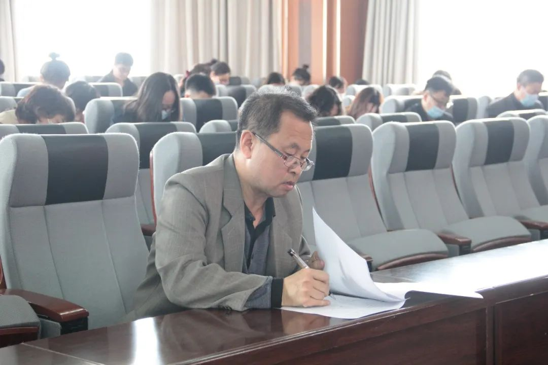 随后,在指导组的指导下,学校组织党员同志在主楼253报告厅进行了党史知识测试。测试中,党员同志严格遵守考场纪律,认真审题、细心作答,展现了良好的精神风貌。通过开展测试,激发了党员同志学习党史的积极性和主动性,营造了比学赶超的浓厚学习氛围,检验了党员同志党史学习的阶段成果,达到了以考促学、以学促用的目的。