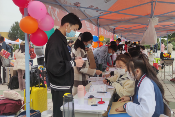 迎新现场秩序井然,迎新工作有条不紊,进展顺利。各系部领导班子全部到位,工作人员认真负责,学生志愿者们热情周到,核酸检测医护人员细致规范。现场气氛热烈,条幅高挂、彩旗飘飘,气球、留影墙、宣传板随处可见,校园广播中循环播放着欢迎词和优美的歌曲,让新生们感受到新学期新气象。