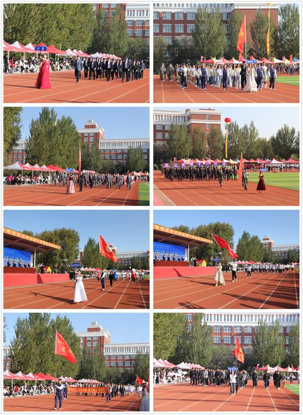 伴着雄壮激昂的旋律,全体师生共赴这场体育盛会。在国旗的引导下,校徽校旗方队、刀旗方队、花束方队、彩球方队、裁判员队伍、行政队伍以及基础教育一系、基础教育二系、职业技术系、学前与特殊教育系、艺术传媒系、思政部、体育系等前导队伍和检阅队伍,以矫健整齐的步伐依次入场。