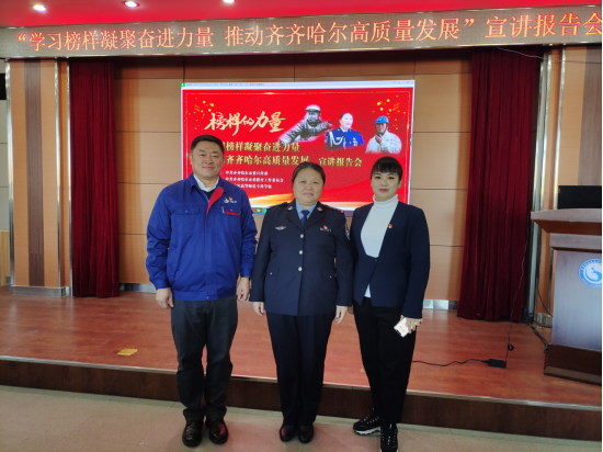 3位宣讲人分别以《永选的铁人——王进喜生平业绩展》《勇立潮头,以新担当新作为唱响新时代奋斗者之歌》《牢记习近平总书记殷殷嘱托 做锻造大国重器的光荣匠人》为主题从不同角度和个人切身实际,讴歌了“爱国、创业、求实、奉献”为主要内涵的大庆精神(铁人精神);报告了高馨玉同志爱岗敬业、敢为人先,急难险重的任务,总是冲在最前面,加班加点,完成一次又一次艰巨任务,以实际行动和铮铮誓言带出了一支又一支能打硬仗的优秀团队先进事迹;报告了刘伯鸣同志模范传承“劳模精神、劳动精神、工匠精神”,扎根锻造岗位30余年,攻坚克难,用匠心锻造大国重器,带领团队在核电产品领域打破国际垄断的先进事迹。