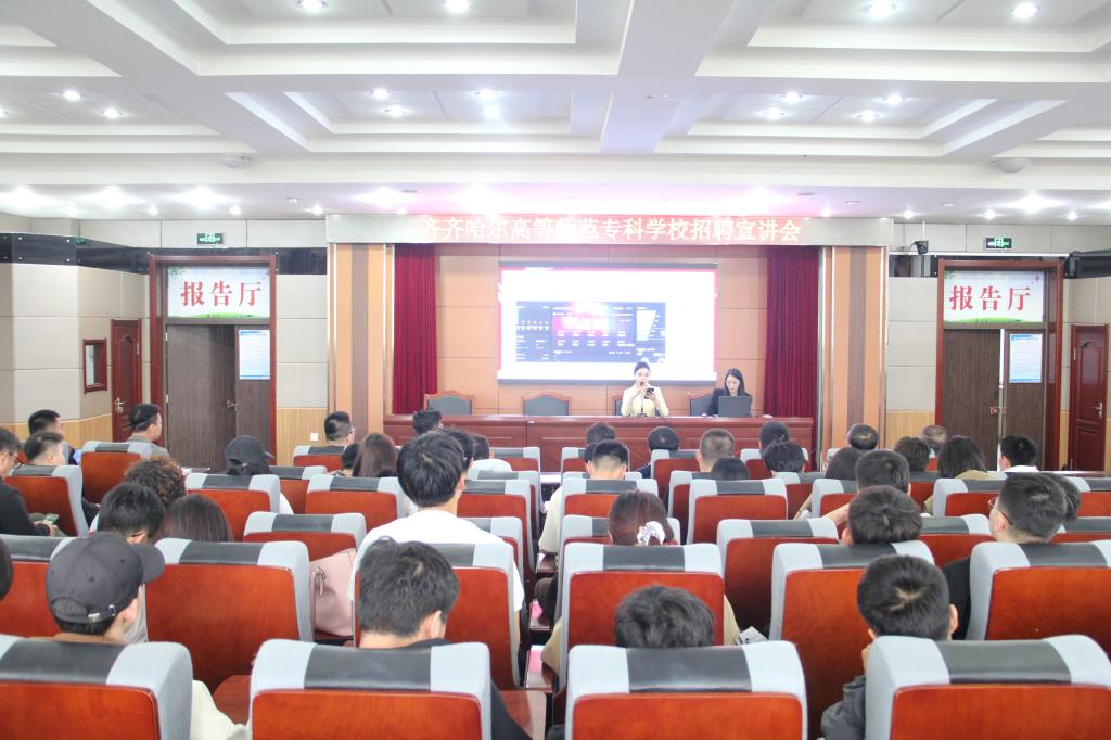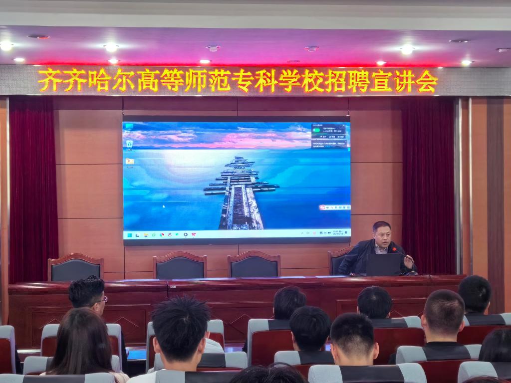 座谈会后,讷河市两家企业在我校举行招聘宣讲会,150余名学生代表参加会议。讷河市委常委、副市长唐守志向与会师生介绍了讷河市的风土人情、自然资源、产业环境及两家企业在人才引进方面的优势。两家企业分别介绍了公司规模、主营业务、发展现状、用人需求,促进供需对接和流程再造。