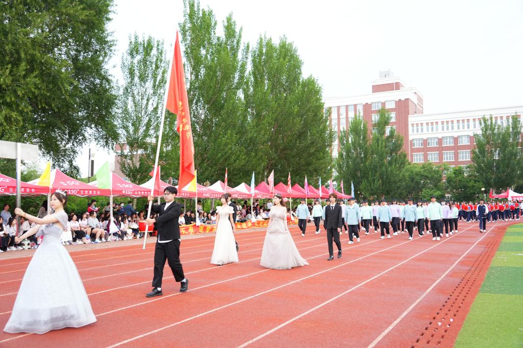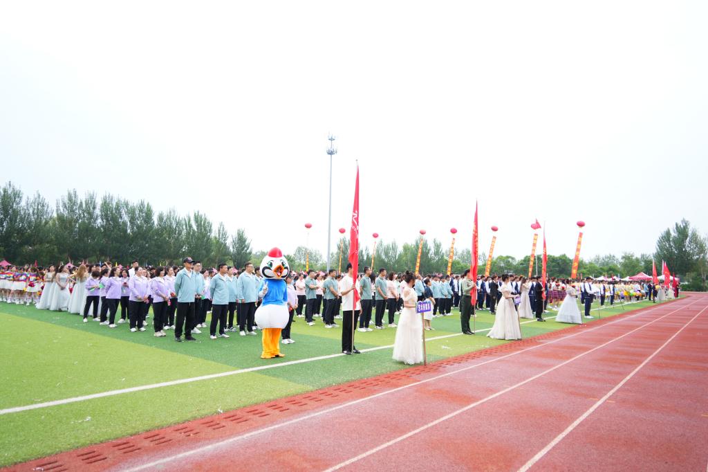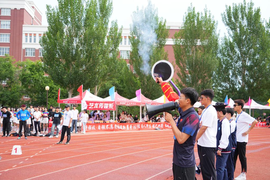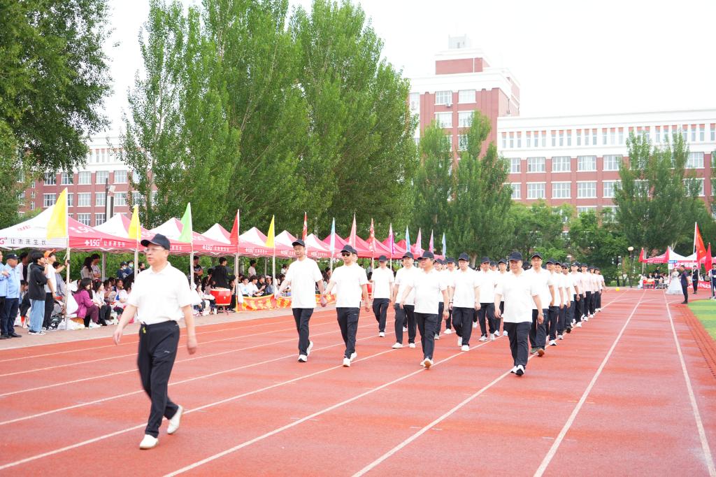 赛场上,激烈的角逐正式开始,全校师生共组成 16支代表队参加运动会,五千多名师生参加28个项目,他们在运动场上挥洒汗水,彰显力量。