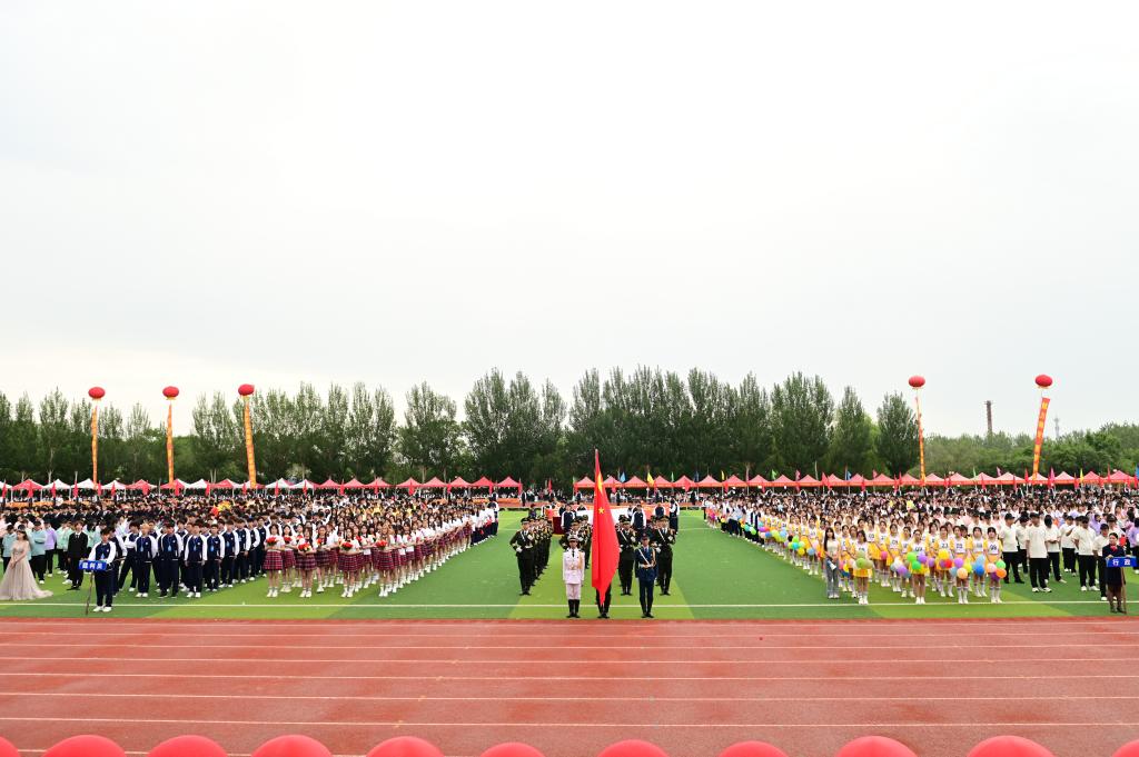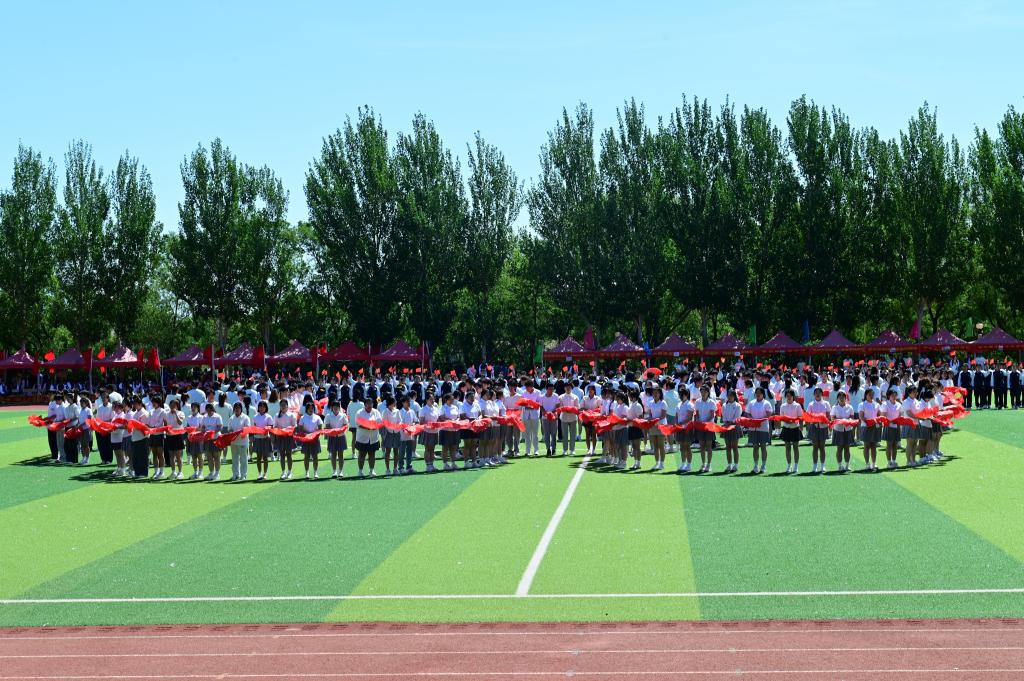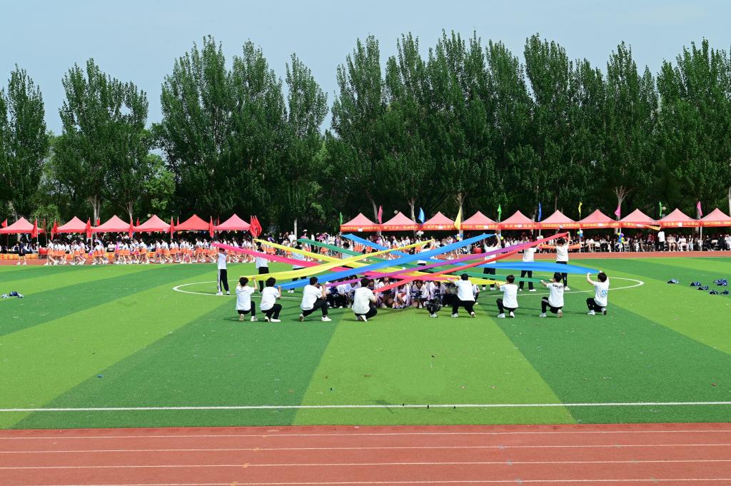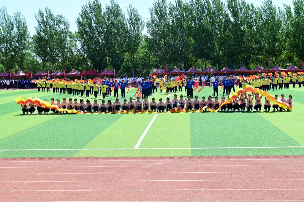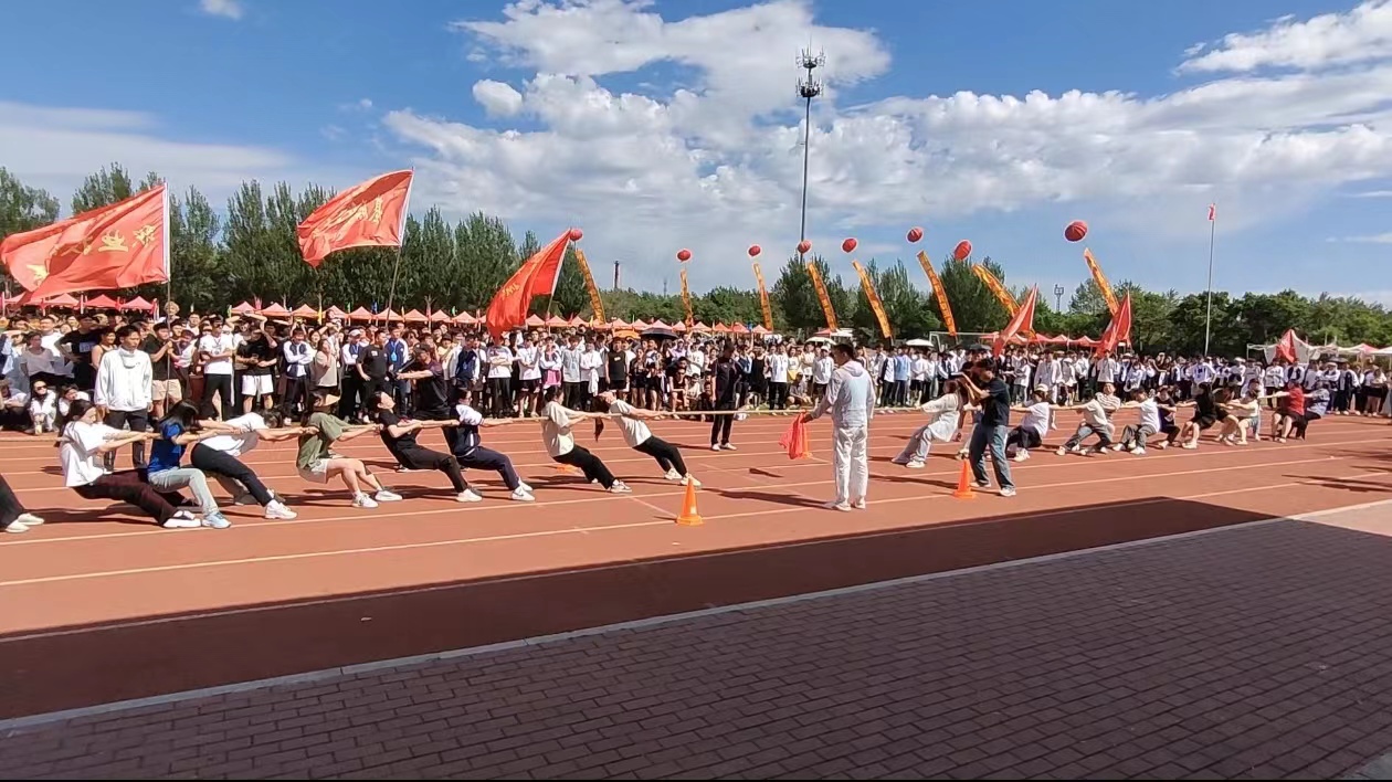 赛场上,激烈的角逐正式开始,全校师生共组成 16支代表队参加运动会,五千多名师生参加28个项目,他们在运动场上挥洒汗水,彰显力量。