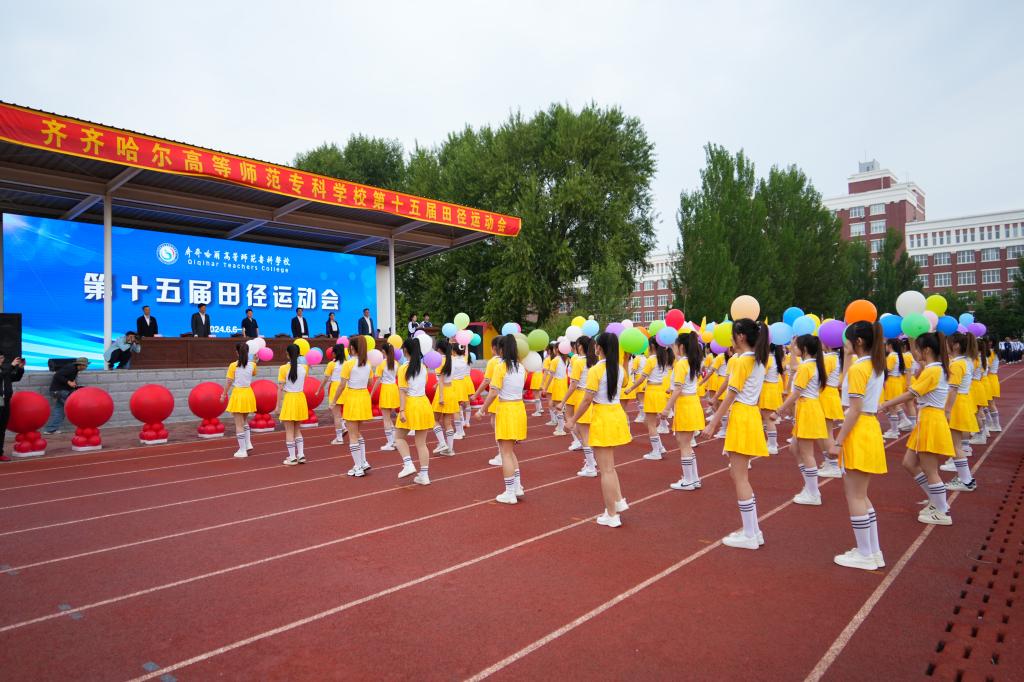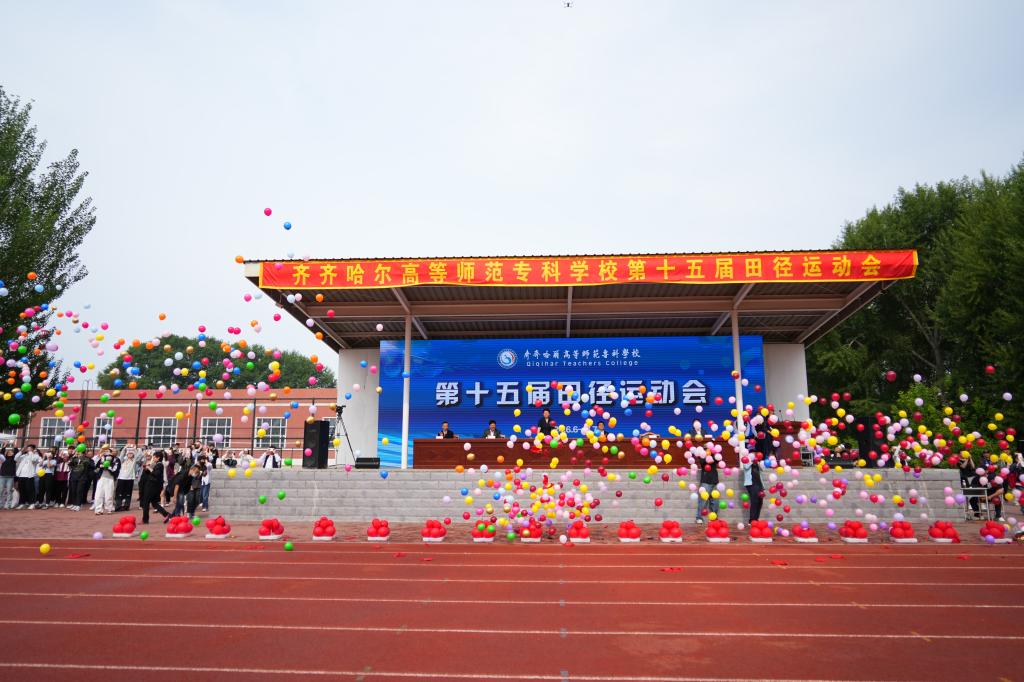 党委书记邹凤玲宣布,齐齐哈尔高等师范专科学校第十五届田径运动会,开幕!
