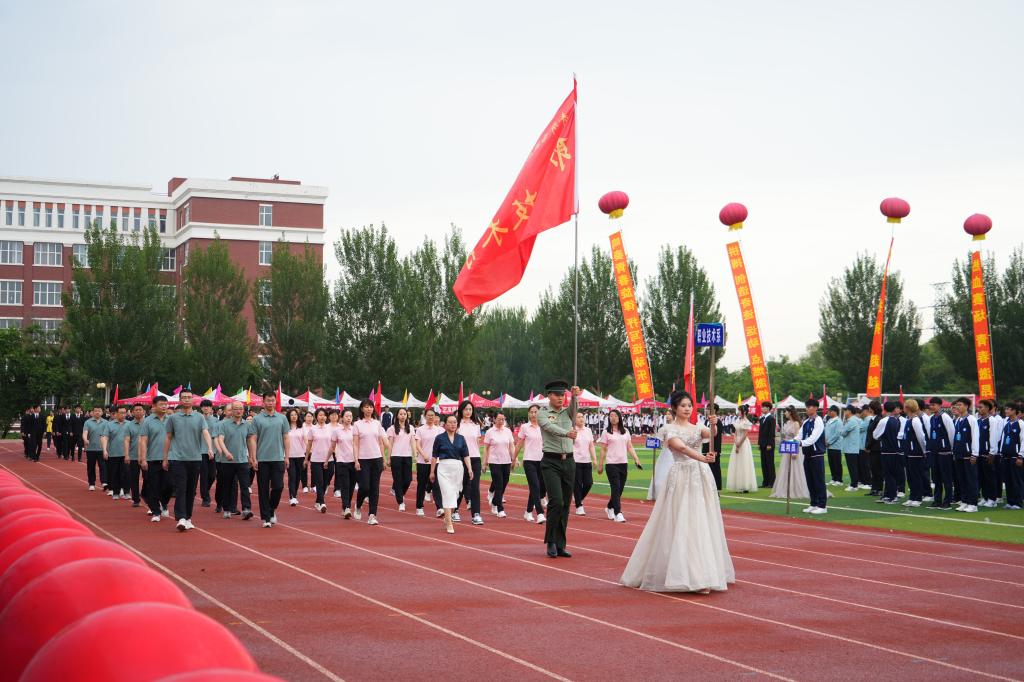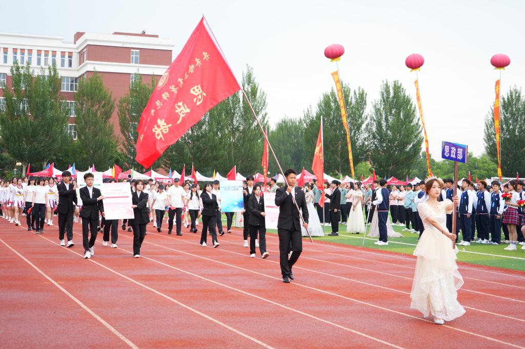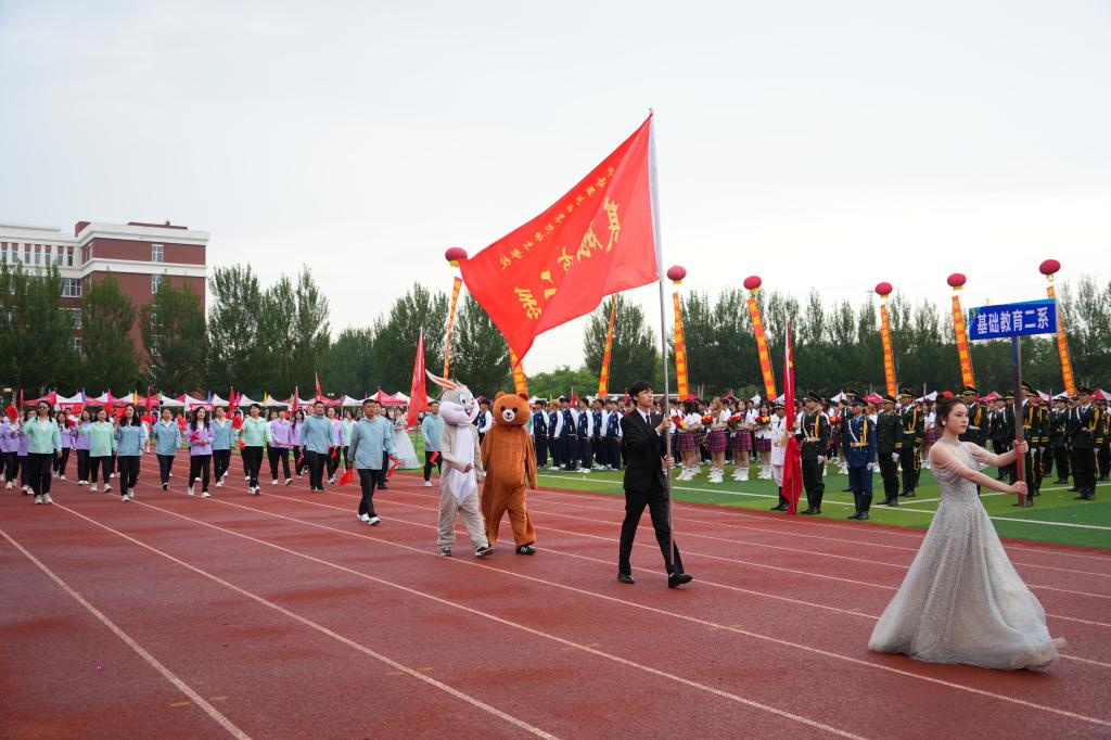 6月6日早7:30,伴随着运动员进行曲,在国旗的引导下,校徽校旗方队、彩旗队伍、花束队伍、彩球队伍、裁判员队伍、行政队伍及基础教育一系、基础教育二系、职业技术系、学前与特殊教育系、艺术传媒系、思政部、体育系等前导队伍和检阅队伍,迈着铿锵步伐,精神饱满的走过主席台,接受检阅。飘扬的彩旗,激昂的口号,汇聚成缤纷的画卷,舞动、伸展、跳跃之间……活力四射、绽放青春。师专人用力量,抒发对生活的热爱,用舞步诠释着闪耀的青春。