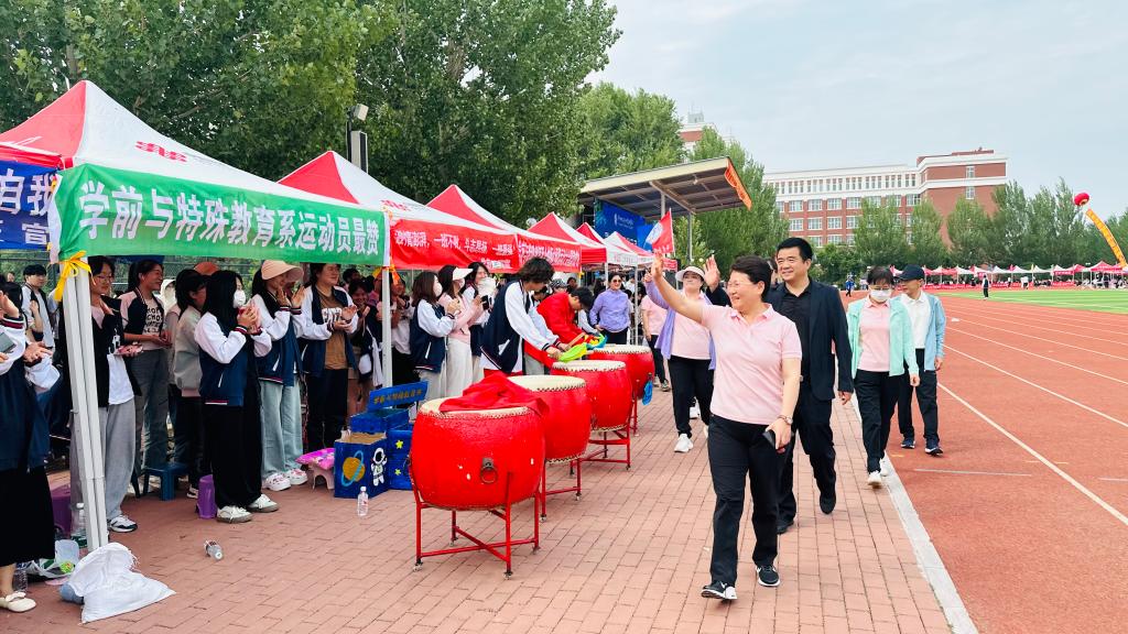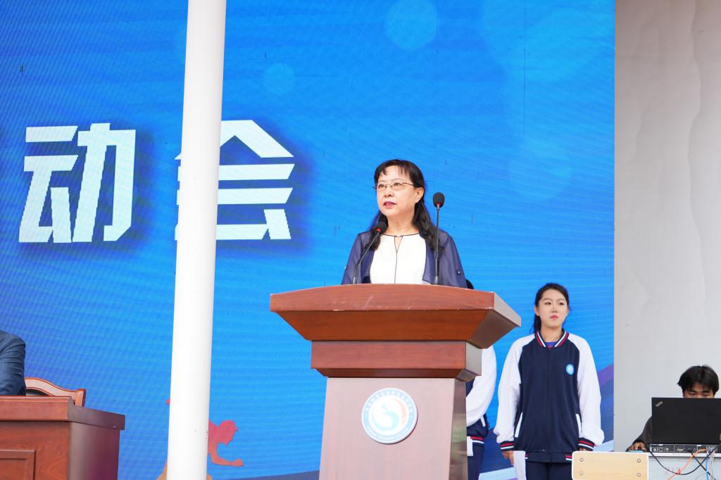 党委副书记、校长王玉国致开幕词,他指出,在2023年的秋季运动会上,师专师生展现出了自强不息、勇攀高峰的青春风采,用无限活力和青春激情,诠释了体育精神的良好风貌。今年,学校确定了“一体、两翼、三提升、四发展、五保障”的“12345”发展思路,即将在高质量发展的新征程上再谱新篇。希望通过运动赛会培养团队精神,锤炼意志品质,提升自我修养,放飞梦想、释放激情。希望每一位教练员、运动员都能够秉持公平公正的竞赛精神,以最佳的状态展现风格、展示实力。希望每一位师生都能从运动赛会中学到更多关于生活、学习和成长的真谛,都能在未来的日子里肩并肩、心连心,共同创造属于我们的奇迹,让青春在这火热的赛道上绽放出最耀眼的光芒。