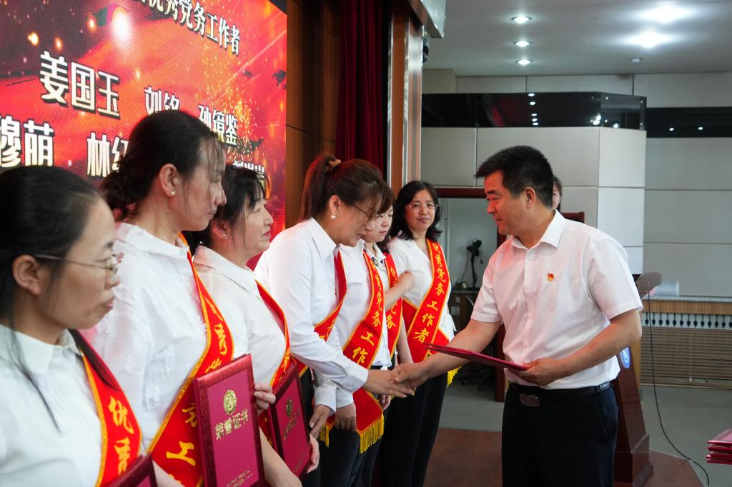 党委副书记、校长王玉国宣读学校党委关于表彰优秀共产党员、优秀党务工作者、先进基层党组织的决定。全校共有23名优秀共产党员、13名优秀党务工作者和6个先进基层党组织受到表彰。