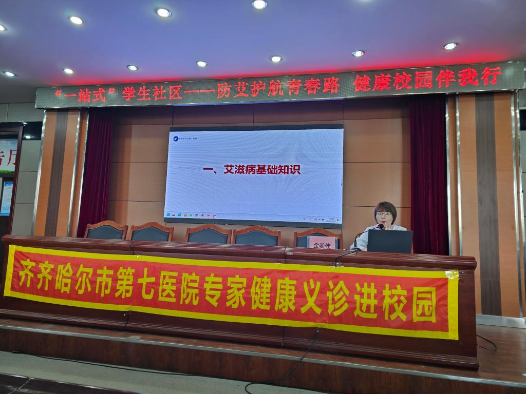 为进一步提升我校学生对艾滋病的认知水平,增强其自我防护意识,倡导践行健康生活方式,营造人人维护健康的良好校园氛围,9月24日下午,学校“一站式”学生社区特邀齐齐哈尔市第七医院专家团队开展艾滋病基础知识与预防控制专题讲座,对外协作科副主任金美佳医生作专题讲座。