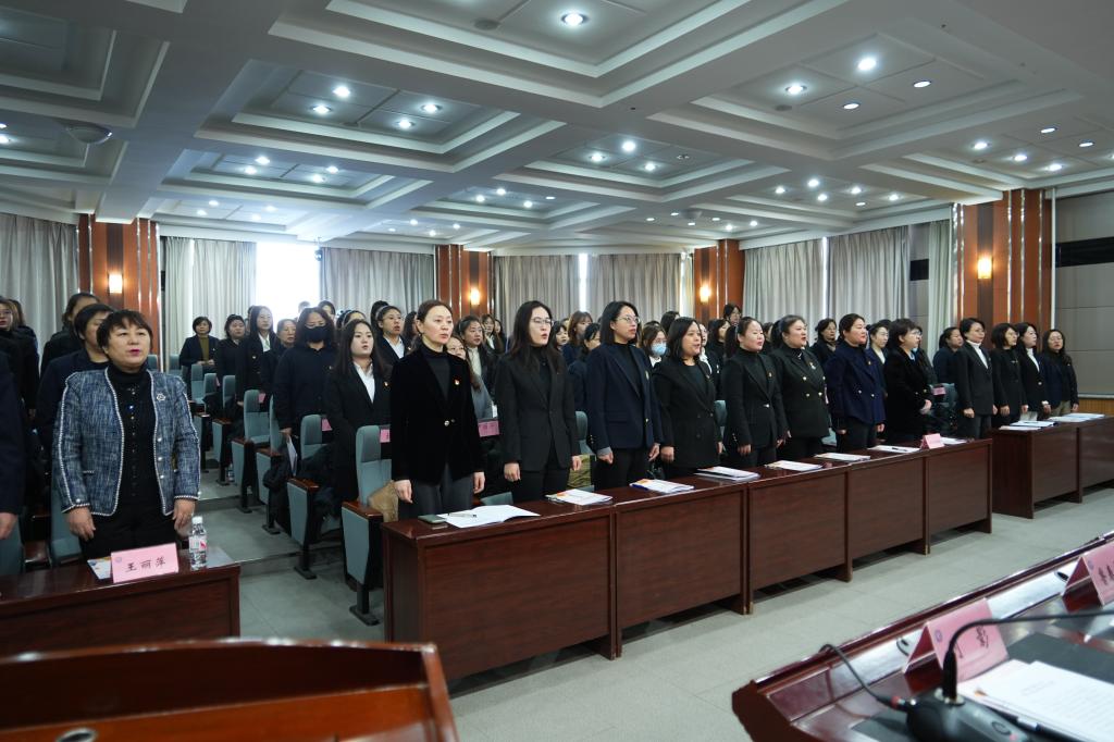 1月15日上午,学校妇女联合会成立大会暨第一次妇女代表大会在砺学楼253报告厅召开。校领导邹凤玲、王玉国、宋英春、姜国玉、鲁春艳、张丹、刘影,市妇联党组书记、主席黄鹤,市妇联二级调研员王丽萍出席会议,全体妇女代表参加大会,基层党组织书记列席此次大会。大会由校党委委员、组织部部长刘影主持。