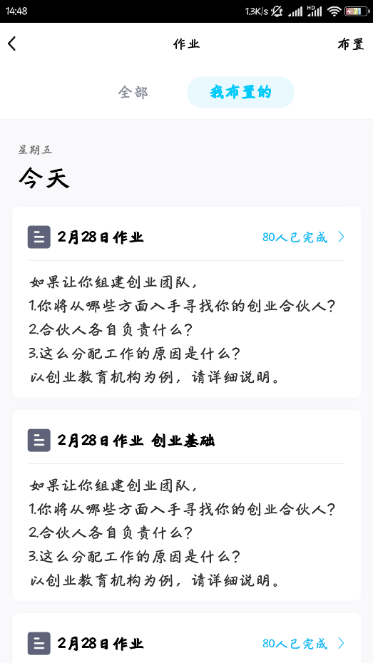 付雅楠要求学生做纸质笔记,下课前发笔记到群里。全体同学都能够按要求及时传笔记,笔记质量也挺好。利用云班课、QQ等给学生布置课后作业,以及课堂讨论。