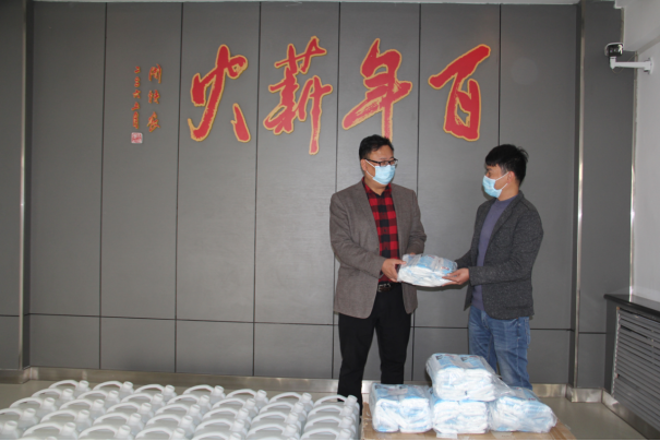 4月17日上午,齐齐哈尔市金利雄服装鞋业有限公司业务主管林雄伟一行来到学校,代表公司向学校捐赠了一次性医用口罩5000只、抑茵型涑美微酸次氯酸液50桶、酒精2箱等防控物资,助力疫情防控工作,副校长金瓯代表学校接受了捐赠并对企业表示衷心感谢。
