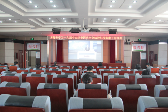 本次会议按照疫情防控要求,参会人员全程佩戴口罩,指定位置就座。与会人员观看了中央纪委国家监委研究室张灵聪《深入学习贯彻十九届中央纪委四次全会精神》专题讲座。讲座从四次全会的总体精神、2019年工作成效、五个坚持的认识与体会和2020年的工作任务四个方面进行了分析和解读。讲座高屋建瓴,思想深刻,深入浅出,对纪检监察干部深刻理解四次全会精神、明确今后工作重点、主要内容和方式方法具有重要指导作用。