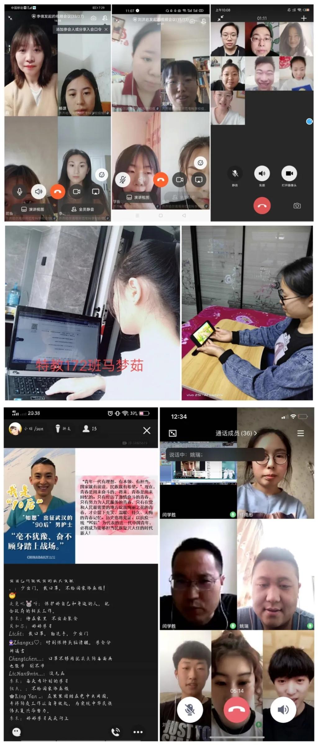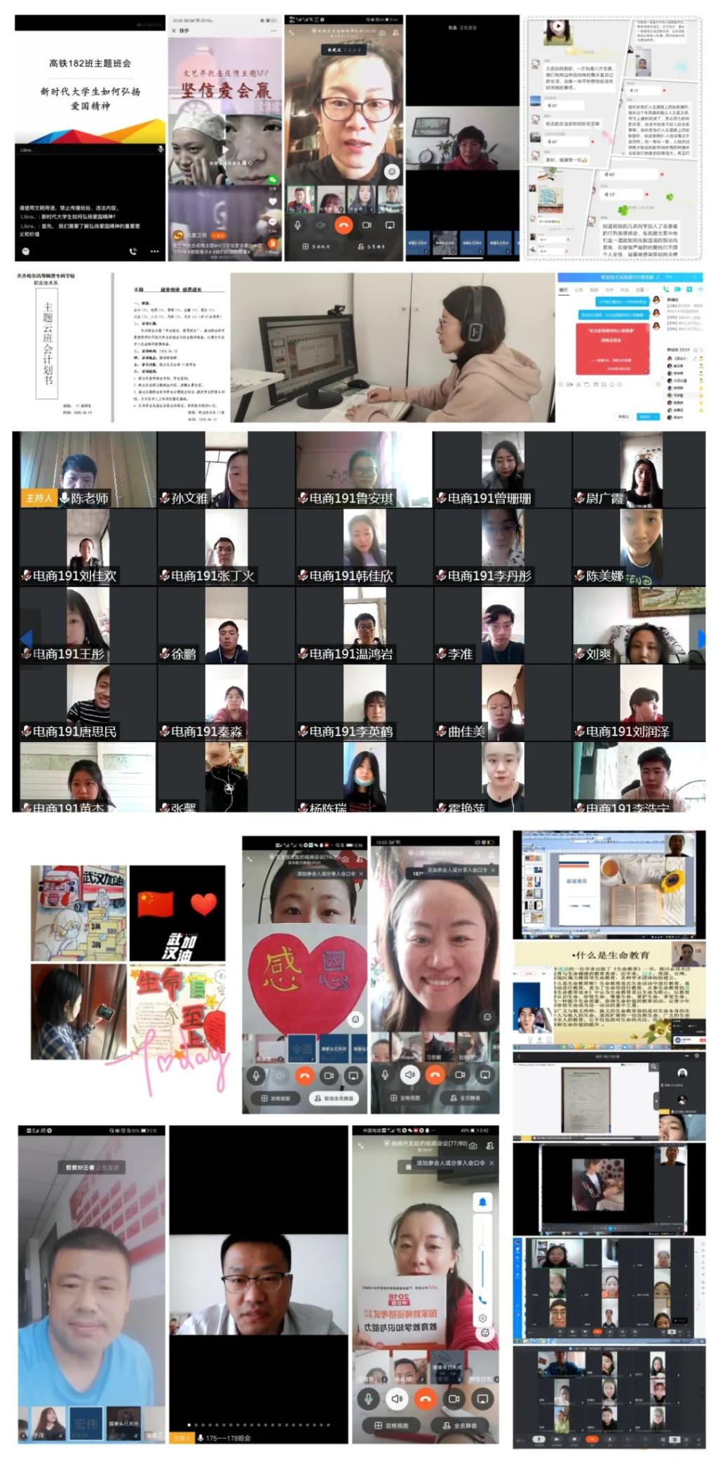 活动开展后,各系部积极响应号召,六个系部所有班级均参加到系列“云班会”活动中,虽然身处异处,师生的心仿佛回归到美丽的校园、温暖的集体。系列云班会围绕六个重点内容,每周一会,由系部辅导员(班主任)结合不同年级学生特点适时开展,各系部辅导员(班主任)通过视频会议、QQ群、钉钉等多种形式带领大家共同学习习近平总书记对新冠肺炎疫情防控工作的重要指示精神和党中央各项决策部署,与同学们一道分享疫情防控期间各地涌现出的先进典型、英雄人物和感人事迹。