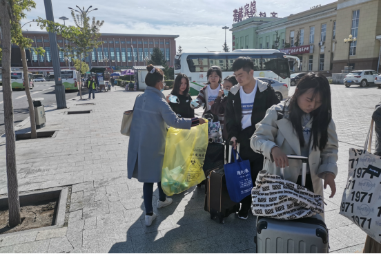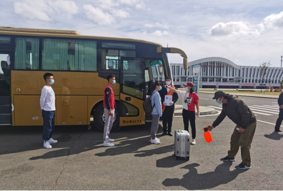 为保证学生顺利返校,按照学校的工作部署,实行专人专车到车站(机场)“点对点”接站,返校学生出站后到达接站处,我系接站教师和志愿者一一核验到站学生身份,登记信息,学生们电子扫描龙江健康码和鹤城平安码、测量体温,消毒人员对学生及随身物品消毒......老师们暖心地为学生们依次分发新口罩,回收废弃口罩,询问他们返程乘车的情况......最后,引导学生们有序进入大巴车,一起回家。久别重逢,激动不已,疫情和口罩阻隔了我们的距离和拥抱,但眼神和微笑便是你我最好的回应。
