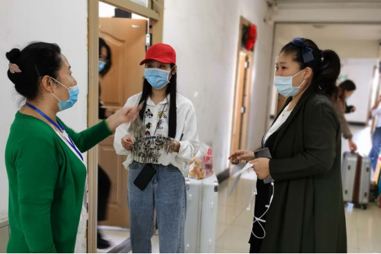 接站车入校后,教师和学生志愿者引导学生们走入两个报到通道,同学们秩序井然,保持安全距离,再次登记自己相关信息后进入核酸采样区,采样后由志愿者引导进入公寓,数名教师已早早守候在公寓五层,等待着他们的学子们。同学们进入寝室后将暂居寝室等待核酸检测报告,简单整理内务,重启温馨一家。