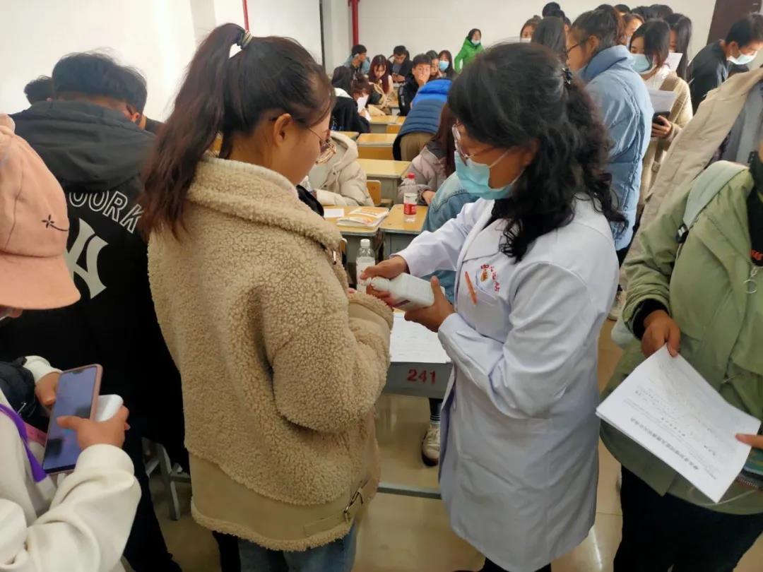 本次活动,由于师生预报名踊跃,团委将报名人员分为三个批次,12:20分血站医生便到达我校开始布置。结合疫情防控需要,本次采血工作在室内填表、体检,在采血车采血,分批分区,避免聚集。在血站工作人员、我校青春健康同伴社成员和各系部团总支青年志愿者分会志愿者们的指导下,参与爱心献血的师生认真填写《无偿献血知情同意书》,医生们化验、标签、采集、储存,献血者们撸袖、握拳、舒张手掌,志愿者们引导、搀扶、披衣服,一颗颗温暖的心汇聚成流,一袋袋鲜红的血浆凝聚成爱。同学们高涨的献血热情持续到夜幕降临,82500ml血浆承载着师专师生的祝福带给需要的人群。