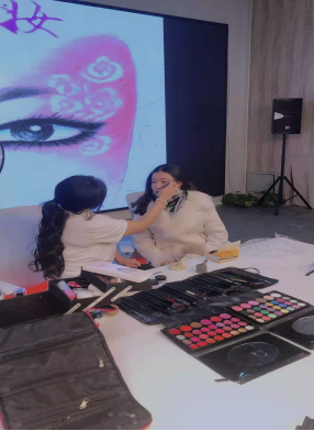 刘老师从底妆、定妆、眼部、修容、高光以及所需要的人物年龄特点分别进行细致的讲解,例如老人妆要加深法令纹和抬头纹的深度、增加人物年龄,青蛇的眼妆要画的明亮、艳丽来突出角色妖的气质等等。刘老师在讲座中从细节到整体,让学生深入的了解了舞台妆的化妆要领和技巧。