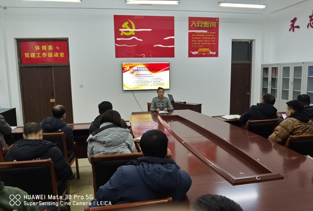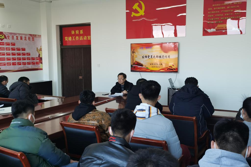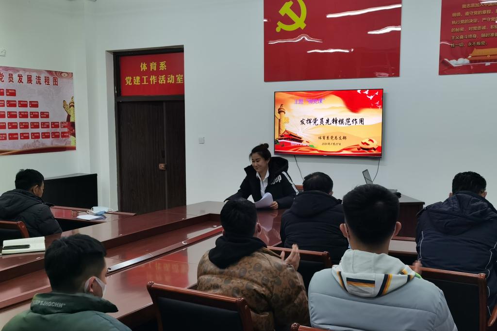按照《齐齐哈尔高等师范专科学校在常态化疫情防控中持续发挥基层党组织和党员作用的具体举措》通知要求,11月27日下午,体育系党总支组织开展了以“发挥党员先锋模范作用”为主题的“微党课”活动,体育系全体党员教师、学生积极分子以及新入职教师参加了本次活动。