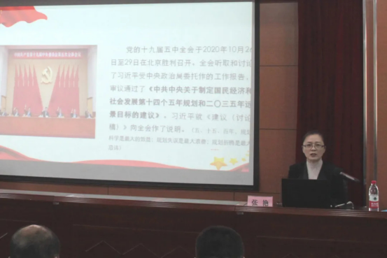 学校邀请齐齐哈尔市委党校党委委员、副校长、市委讲师团副团长、法学教授、享受市政府特殊津贴的张艳同志给学校党员干部和全体思政课教师作党的十九届五中全会精神专题宣讲。报告会由党委委员、副校长金瓯主持。