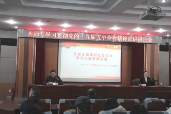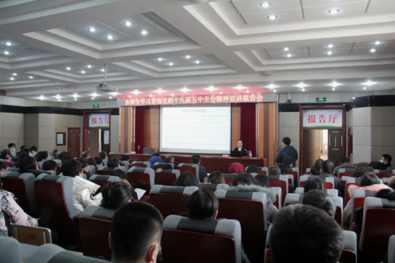 为更好深入学习贯彻党的十九届五中全会精神,推动全会精神在广大党员干部心中落地生根,以实际行动践行“两个维护”,凝聚起开启全面建设社会主义现代化国家新征程的强大力量。12月10日下午,学校在253报告厅举办党的十九届五中全会精神宣讲报告会。