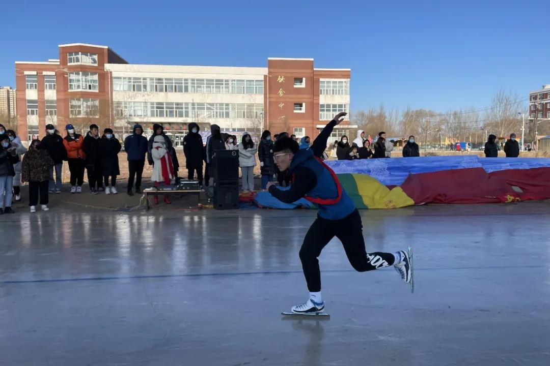 全校师生以高涨的热情和满满的期待去享受这一场别开生面的冰雪盛宴,本次竞赛学生组设200米、400米、男女4*200米接力,教工组设男女200米和推爬犁、冰上龙舟、冰球射门等游戏项目,比赛过程中裁判员和工作人员不畏严寒、认真负责。比赛现场,冰上温度接近零下20摄氏度,可赛事却异常火热,只见在洁白的冰面上,一个个矫健的身影不断闪过。所到之处,欢呼声、加油声、助威声此起彼伏,激烈的比赛驱散了冬日的严寒。