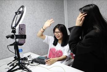 “主流媒体平台直播”是师生最期待的一讲,曹雪岩老师精辟的分析让学生快速理解“人、货、场”;知名主播“大碗”亲自示范,以区别淘宝、抖音在直播带货方式上的不同,令人领略到零粉丝带货账号快速涨粉的主播技术与风采。两个小时的直播实战演练过程充满着惊讶、惊喜、迷惑、顿悟的氛围,师生受益匪浅。