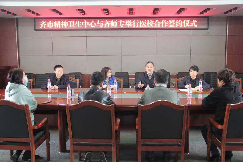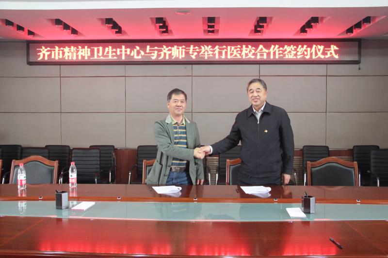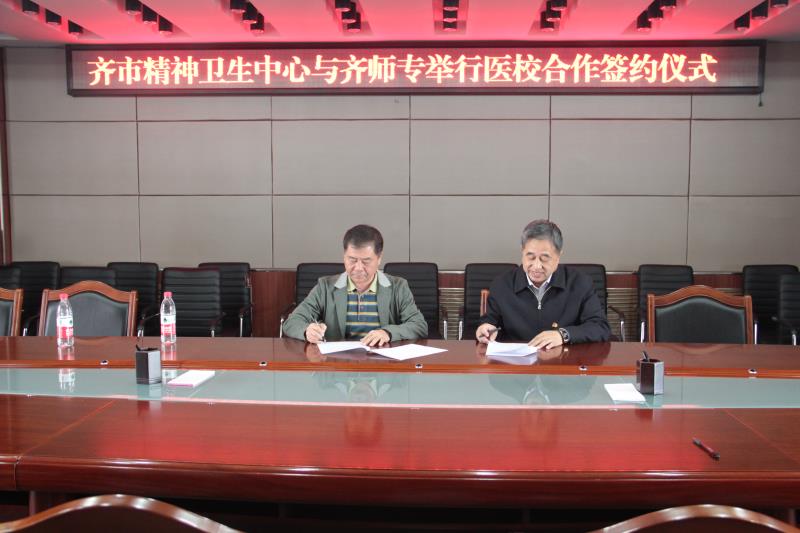 校党委副书记于福军、市精神卫生中心副院长于恩庆,及医校相关人员出席了签约仪式。
