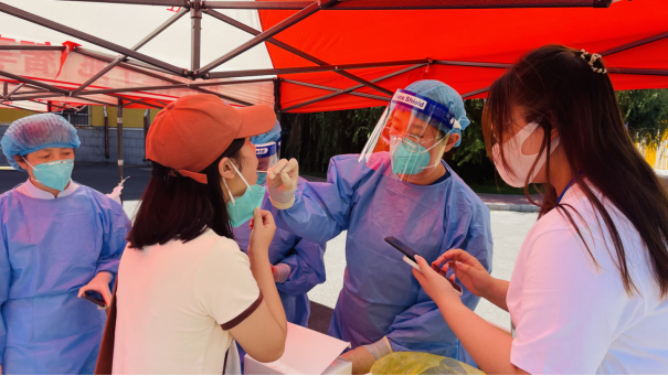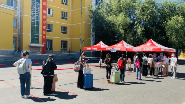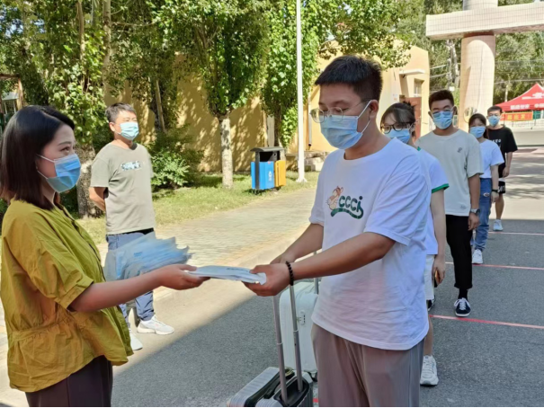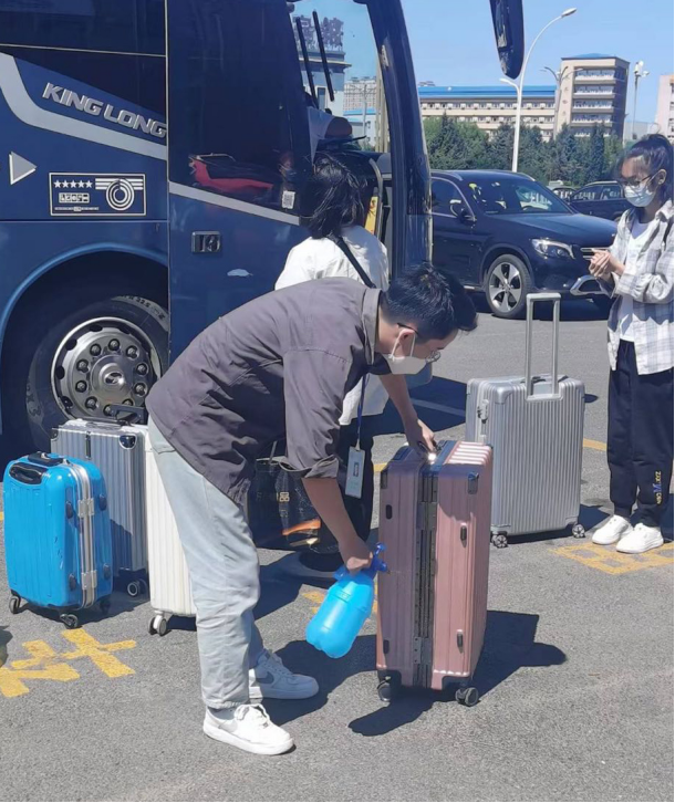 学校坚持防疫检测关口前移,安排专车到火车站“点对点”接站,为学生健康保驾护航。学生经过核验身份、扫码、测温、随身行李物品消杀、更换新口罩后登车返校,入校第一时间进行核酸检测。