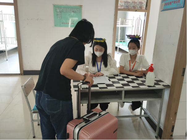 清晨,相关职能部门和各系部的教师、学生志愿者们早早到岗,以饱满的热情等候久别的同学归来。
