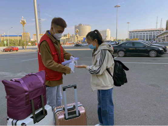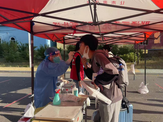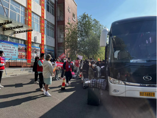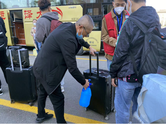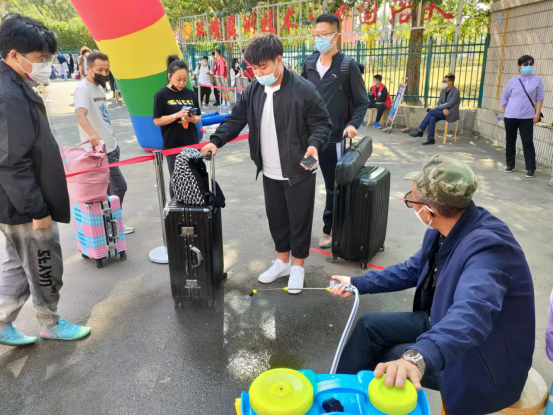 清晨,静美的校园张开怀抱,迎接来自五湖四海的青春身影。师生志愿者们早早的在车站和校内迎新点等候着新生的到来。经过查验核酸报告、健康码、行程码、体温测量、物品消杀、更换口罩,新生乘坐接站车来到了温馨美丽的师专校园。自驾通道,秩序井然。