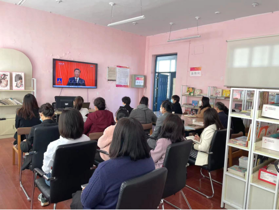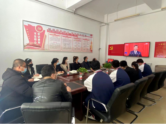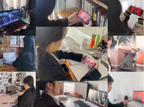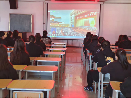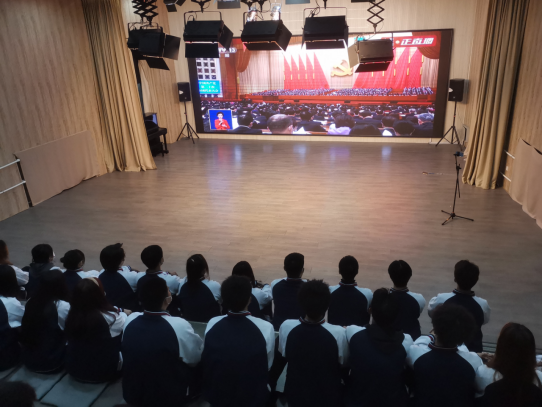 观看现场,气氛热烈而庄重。师生代表聚精会神、专心聆听,时而记录报告内容和心得体会,整个会场洋溢着浓厚的学习氛围,不时爆发出热烈的掌声。