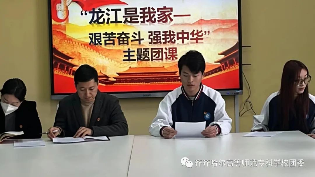 为深入学习宣传贯彻党的二十大精神,贯彻落实省第十三次党代会精神和习近平总书记在建团百年庆祝大会上的重要讲话精神,着力增强广大青年对龙江的归属感、认同感,激励团员青年紧紧围绕龙江全面振兴全方位振兴工作大局,加强学习、守正创新、奋发有为、吃苦耐劳,争做有理想、敢担当、能吃苦、肯奋斗的新时代好青年,我校于2023年3月23日开展“龙江是我家——艰苦奋斗 强我中华”校级主题团课。