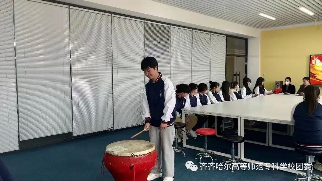 团课第四项:通过击鼓传花游戏,在场团员青年纷纷表达对龙江发展的切身体会和对未来的美好期许。