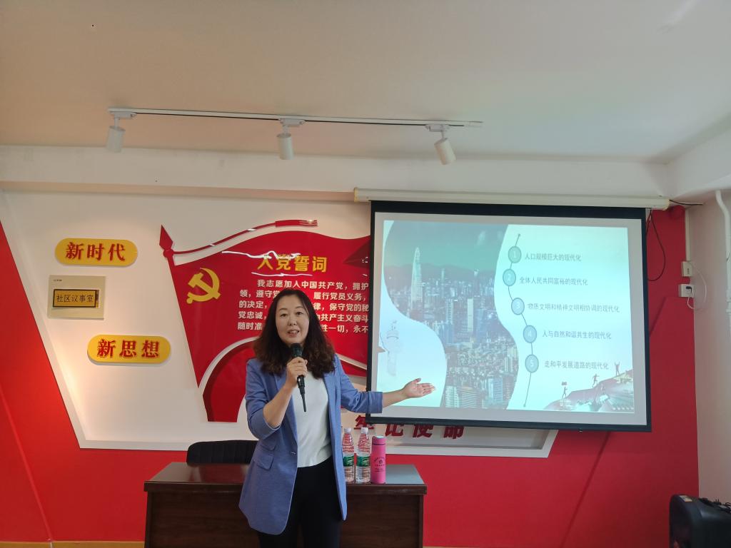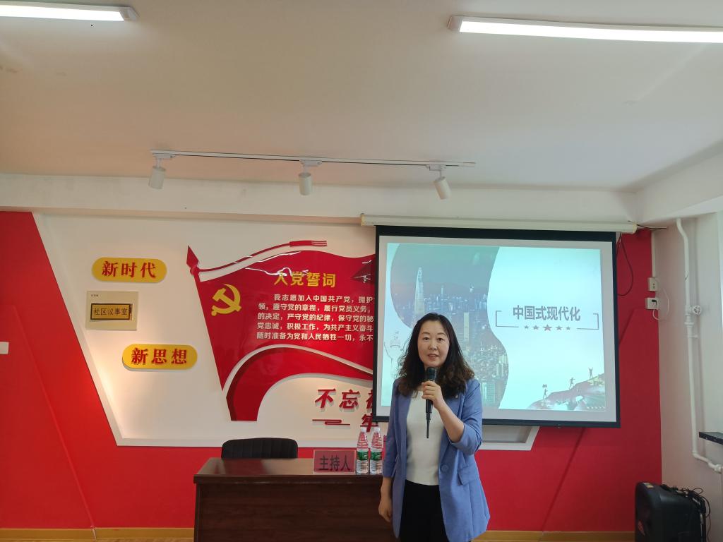 此次党的二十大精神宣讲的主题为《中国式现代化之路》,姜肖老师为社区工作者、社区老党员群众讲解了二十大核心词“中国式现代化”,从中国式现代化的奋斗历程、中国式现代化的显著特征,充分说明中国式现代化接续奋斗的科学内涵和时代意义。宣讲内容用丰富的例证与社区工作实际相结合,鼓舞在座的社区工作者以群众的需求为工作出发点,打通基层社会治理的“最后一公里”。
