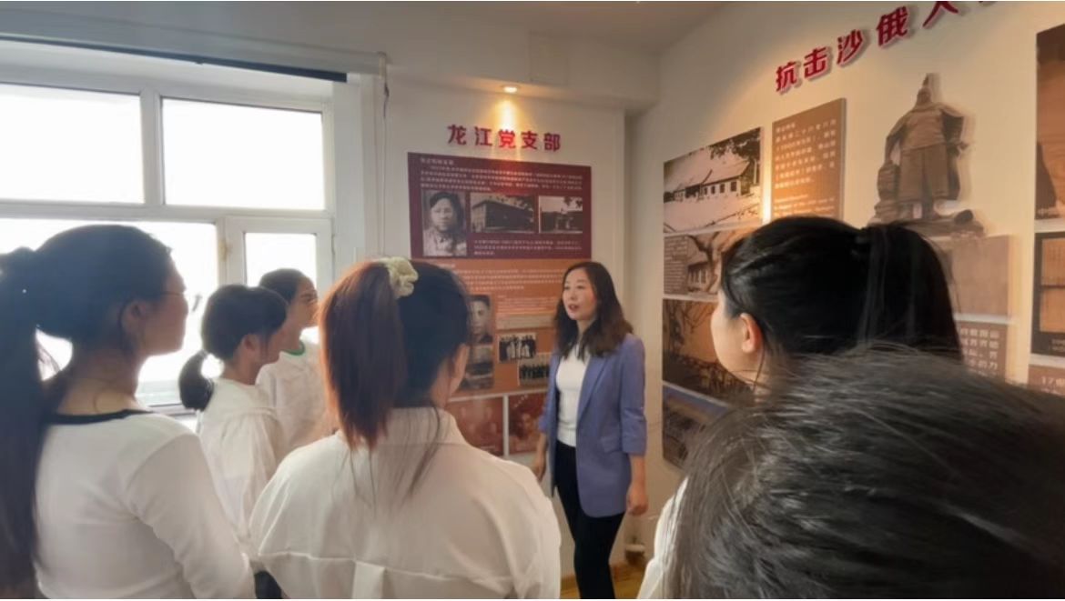 接着师生们来到了社区国防展室进行参观,姜肖老师从齐齐哈尔英雄城市的角度入手,用生动的语言为学生们介绍了寿山将军、谍战双星、一个日本兵的忏悔、国防军工企业、大国工匠精神、新时代航天英雄等齐齐哈尔红色文化。学生们被这节“特别”的思政课所吸引,大家纷纷表示:“要自觉学习齐齐哈尔的革命历史,把这座城市里珍贵的革命道德和红色基因学习好、传承好、发扬好,自觉同歪曲历史的虚无主义做斗争。实现中国梦是一场历史接力赛,当代青年要在实现中华民族伟大复兴的赛道上奋勇争先。”