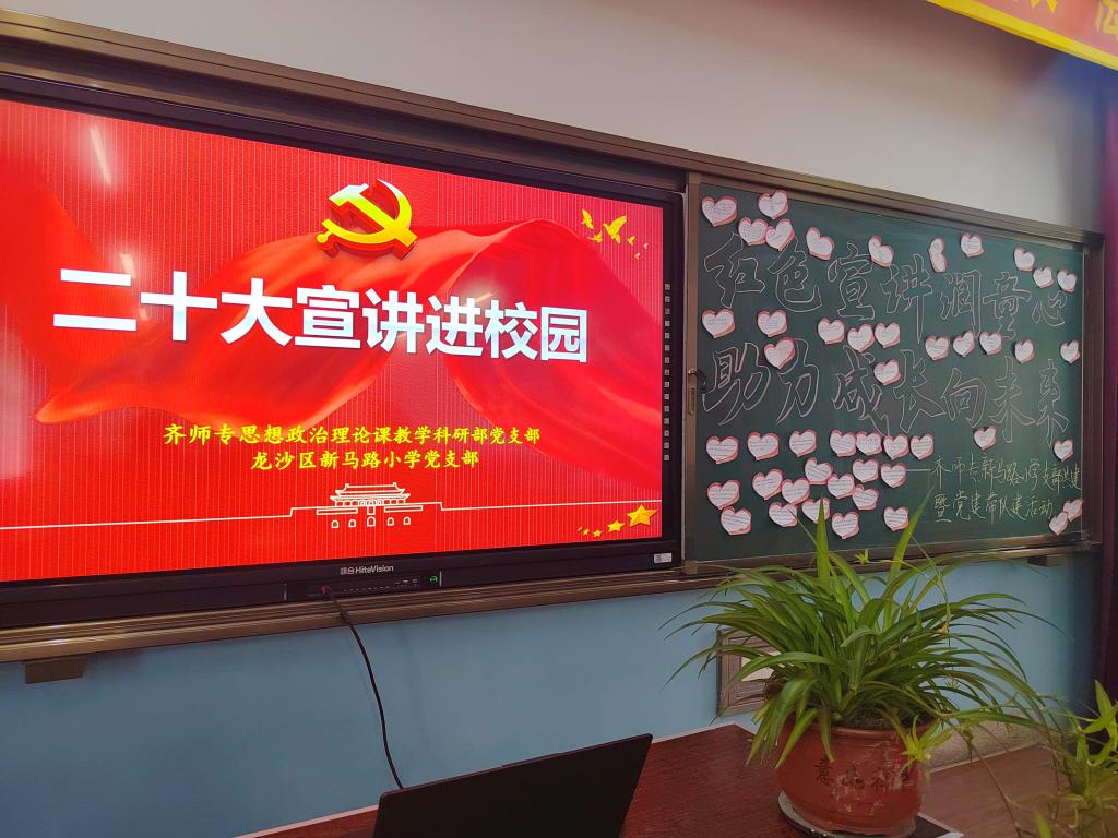 为深入学习贯彻党的二十大精神,推动大中小学思政课一体化建设,切实发挥思政课教师的专业优势,按照思政部年度工作计划,6月2日,思政部党支部成员走进齐齐哈尔市新马路小学,为祖国的“小花朵们”作题为《大美中国辉煌成就》专题宣讲。