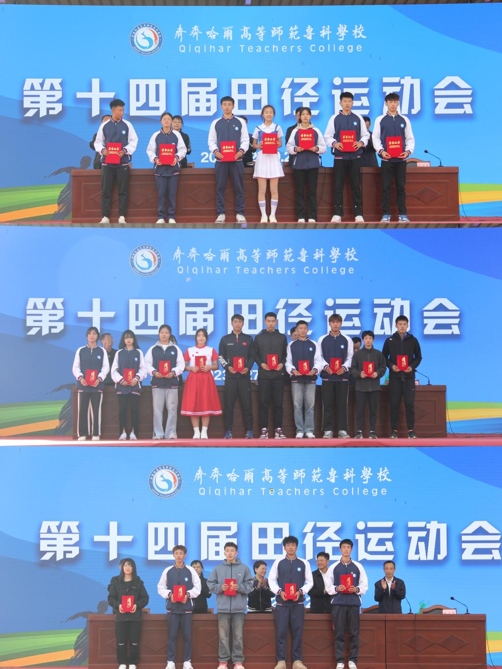 经过两天的激烈角逐,9月28日下午,校运动会胜利闭幕,一场承载着师专全体师生梦想与激情的田径运动会圆满落下帷幕。校领导邹凤玲、陈相伟、宋英春、丁连举出席闭幕式。闭幕式由宋英春主持,与会领导为获奖师生、集体颁奖。