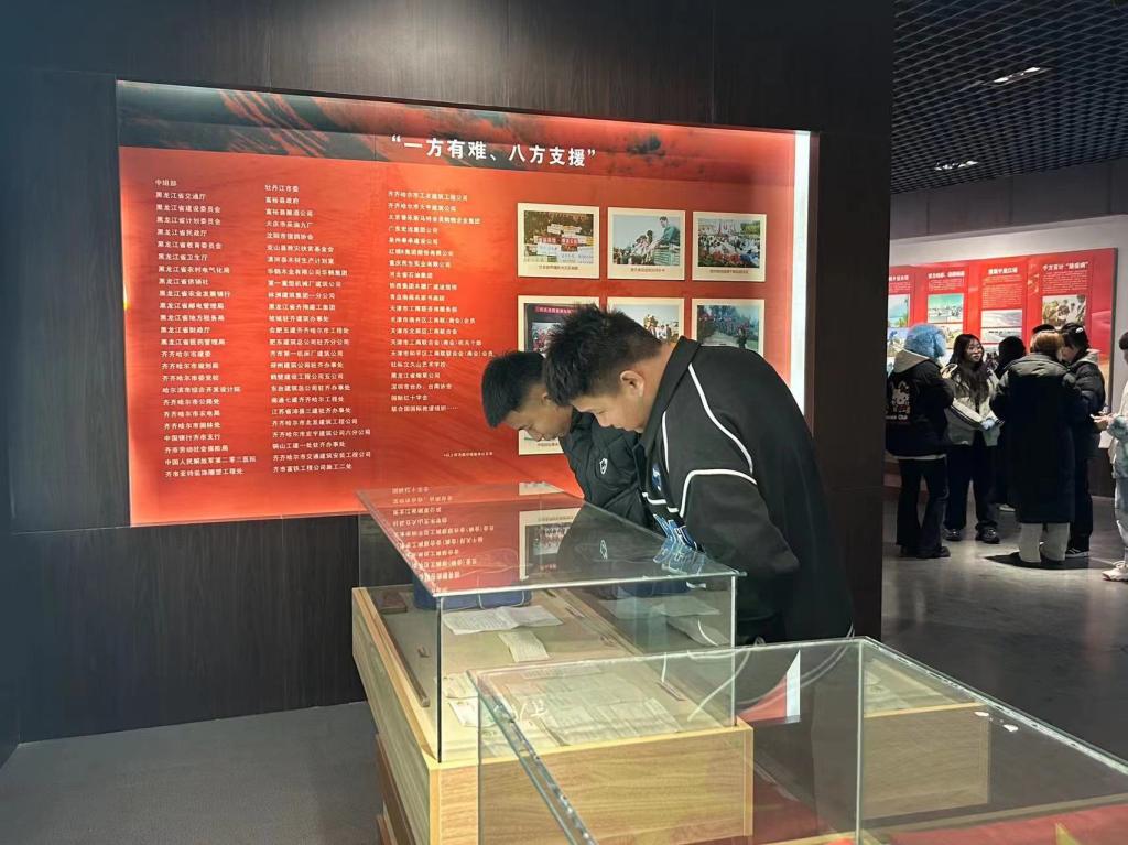 师生们首先在纪念馆讲解员的介绍下了解了嫩江自然概况、水况、水情、九八年特大洪灾防汛期间江水泛滥受灾情况以及党政军民抗洪、抢险、自救情况。在讲解员引导下全体师生参观了室外展区,室外展区展示了九八年抗洪期间的灾民安置点、村办公室、村小学、医务室、治安室、五百年一遇洪水灾害见证石碑等。最后大家回到纪念馆内通过实物、图片、放映大厅的影像学习了在九八抗洪精神激励下,灾区重建家园和经济社会发展所取得的各项工作成就。师生们切身感受到了“万众一心,众志成城,不怕困难,顽强拼搏”的抗洪精神的伟大,和中国人民面对灾情时展现出的强大凝聚力、坚强意志力和必胜信念。