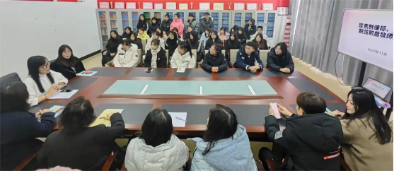 讲座结束后,高老师与系专业老师及小学英语教育专业2022级学生代表又围绕“聚焦新课标,励志从教”进行了主题座谈。她就学生关切的职前、职后问题等进行了交流,结合多年从事一线英语教学的经历,生动耐心地解答了同学们提出的“如何理解英语核心素养?英语教学中课堂用语怎样设计?希沃白板软件如何制作课件?小学英语教师需要具备哪些基本素质?”等问题,娓娓道来中体现了一名优秀教师深厚的育人情怀,给现场的老师和学生们留下关于教育教学的思考和感悟。
