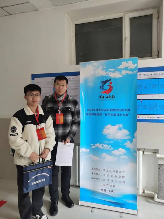3月22日-23日,在大庆职业学院举行的2024黑龙江省职业院校技能大赛暨国赛选拔赛“化学实验技术”团体赛项中,我校职业技术系赵鸿仁老师和环测221班张震同学共同参赛(师生同赛),喜获团体赛三等奖。