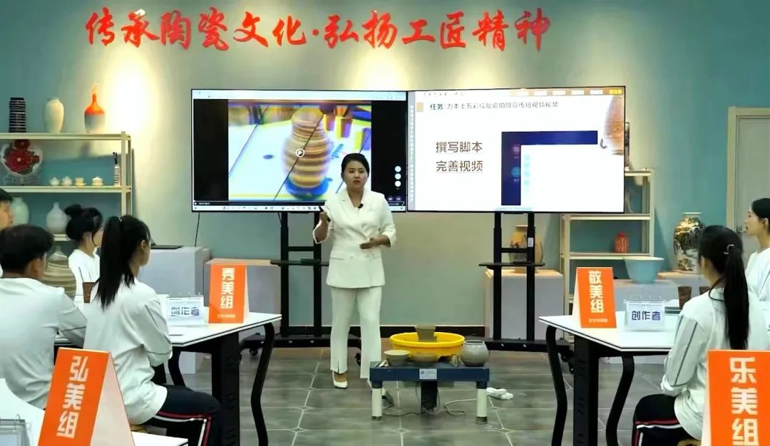 国赛决赛视频录制阶段,韩丽老师在讲授陶瓷艺术