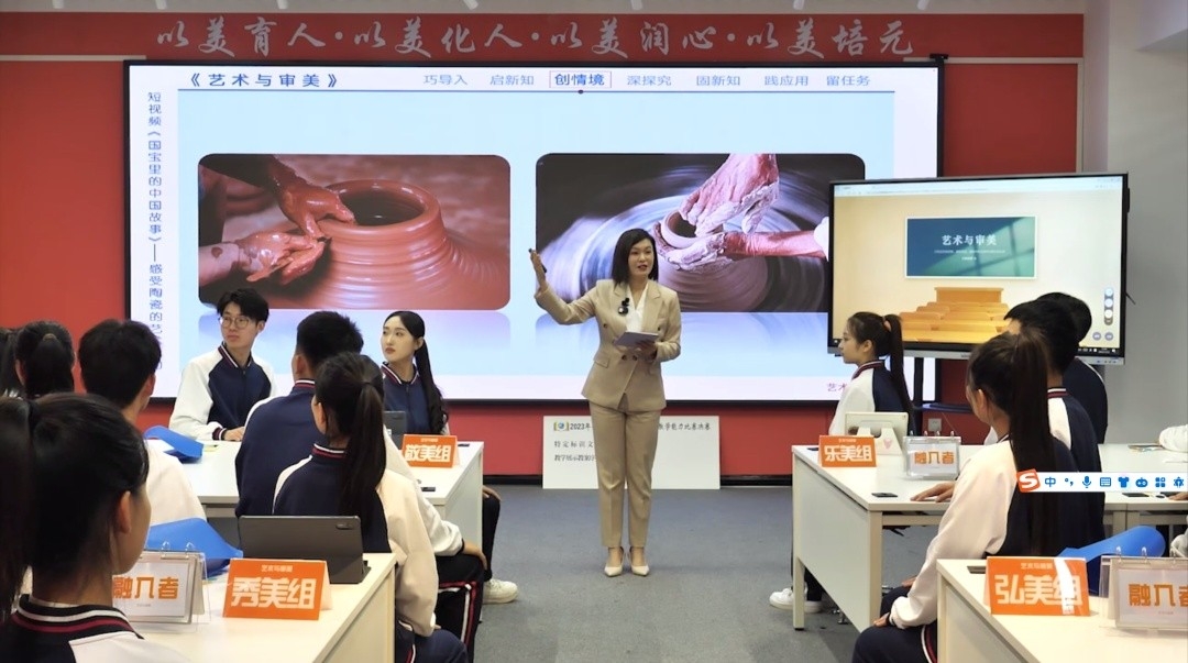 国赛决赛抽课教学环节,林雨童老师在讲授陶瓷艺术