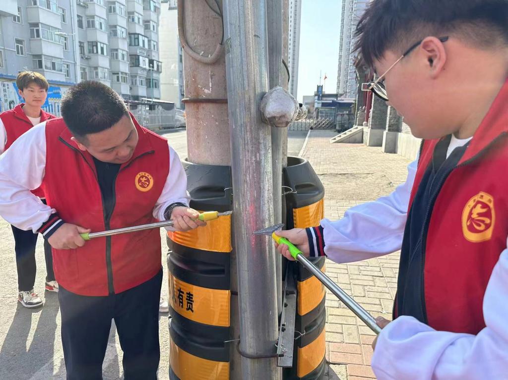“美化环境”志愿者服务中,学生们认真清扫社区卫生,他们身穿红色马甲,手持扫帚、铲子等清洁工具,对社区进行集中清理,他们分工合作,干劲十足,以实实在在的志愿服务精神,为文明城市、文明社区建设注入一份力量。