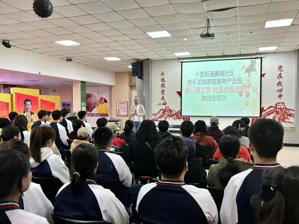 4月10日,艺术传媒系党总支书记王洪江带领支委党员教师、团总支青年学生志愿者与卜奎街道鑫海社区联合龙妹家庭服务产业园,共同开展“蒲公英之梦、社区创业启航”主题微创业培训和“美化环境”志愿者服务等活动。